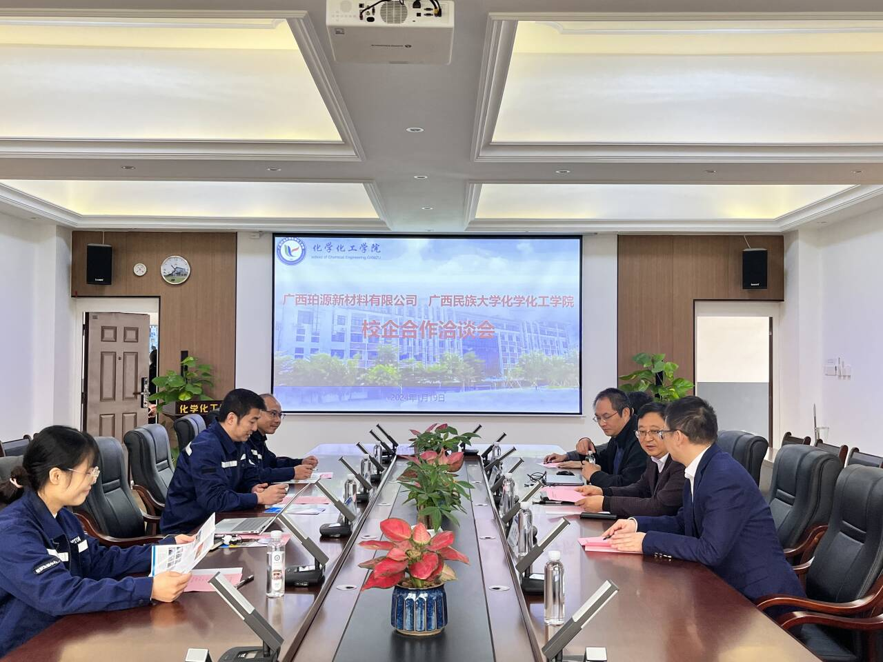 陈韬对我院近年来发展取得的优异成绩给予肯定,同时简要介绍了广西珀源新材料有限公司发展历程及人才需求现状。他表示,广西珀源新材料有限公司历来高度重视校企合作,希望双方聚焦未来深层次合作的同时,加强在“新材料”“新工艺”人才培养方面的合作,助力企业实现跨越式发展愿景。