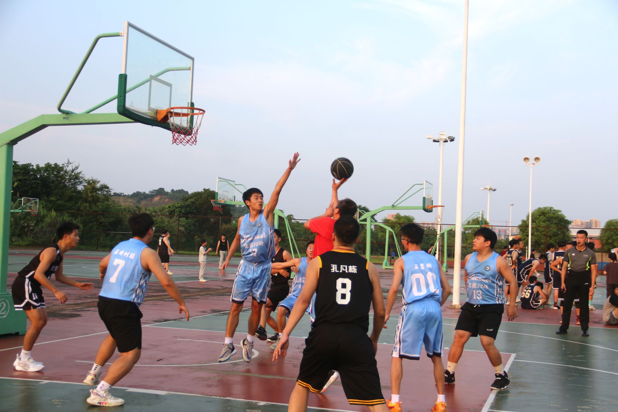 随着哨声响起,参赛选手们士气高昂,迅速投入到比赛氛围中。赛场上,球员们奋力拼搏,每一次进攻、防守都充满了紧张与刺激。他们精准的投篮、灵活的突破和默契的配合,赢得了现场观众的阵阵喝彩。