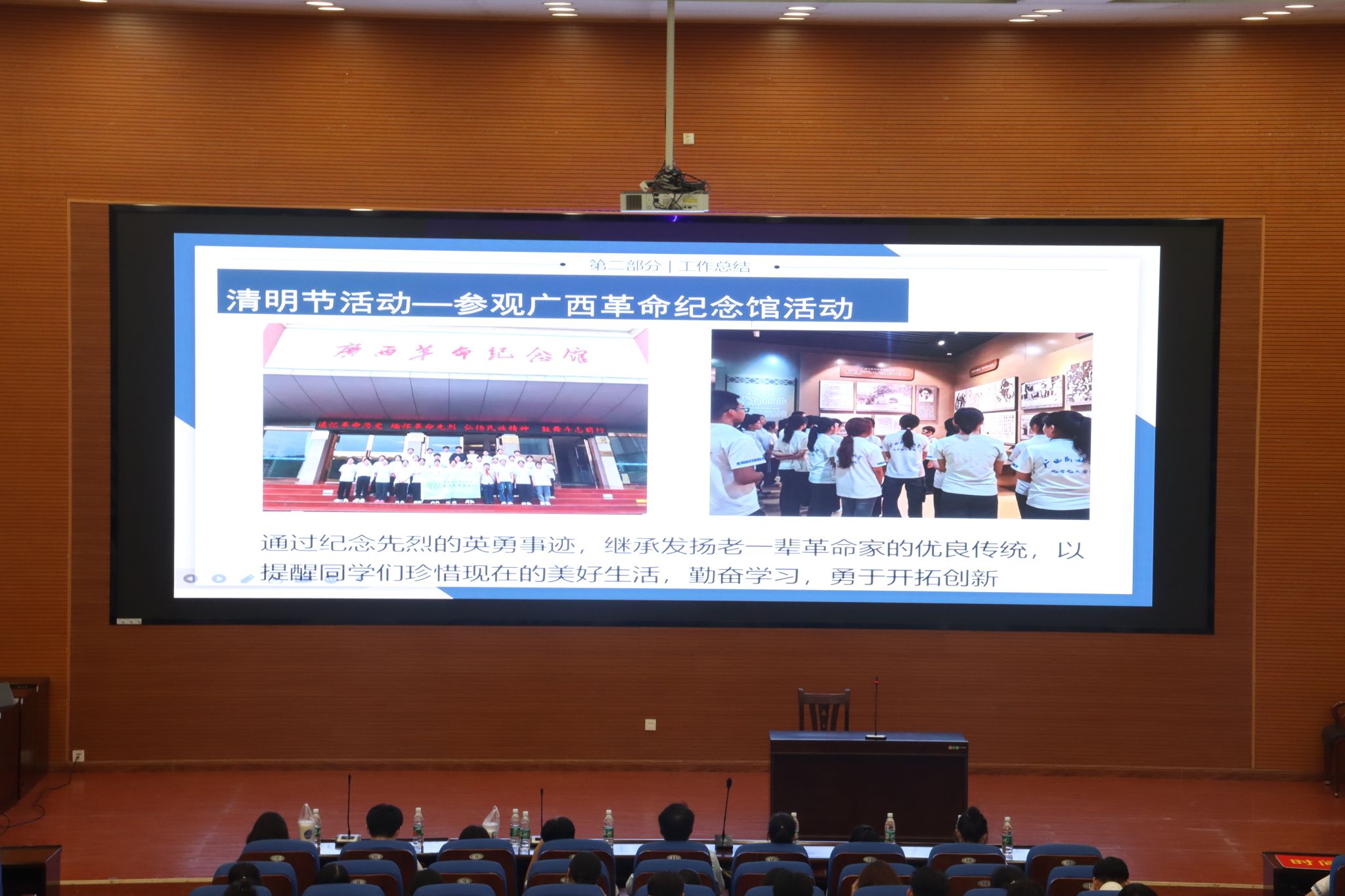 会上,学生会主席团成员覃娟娟代表学生会,从组织建设,活动的开展,思想宣传,权益维护四个方面对一年来的工作进行总结。随后,团委、易班、新闻中心汇报人依次进行组织年度总结。接着,学生会、团委、易班、新闻中心下设的部门汇报人从部门成员介绍,年度工作概括,不足与解决措施,未来展望等内容认真地进行部门年度总结。