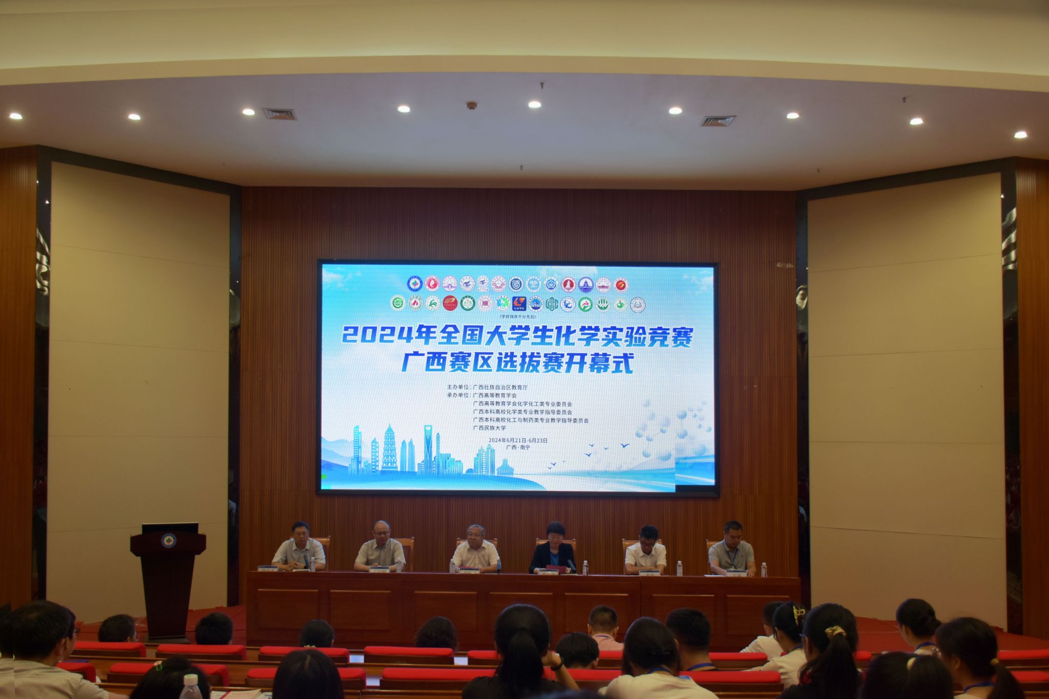 6月22-23日,2024年全国大学生化学实验竞赛广西赛区选拔赛在广西民族大学举行,本次比赛由广西民族大学必威西汉姆联承办,来自全区28所高校的师生参加了此次比赛。广西民族大学副校长姜明国参加开幕式并致欢迎辞,赛事委员会副主任、广西大学必威西汉姆联党委书记、院长周立亚致辞,广西民族大学必威西汉姆联院长谭学才主持开幕式。