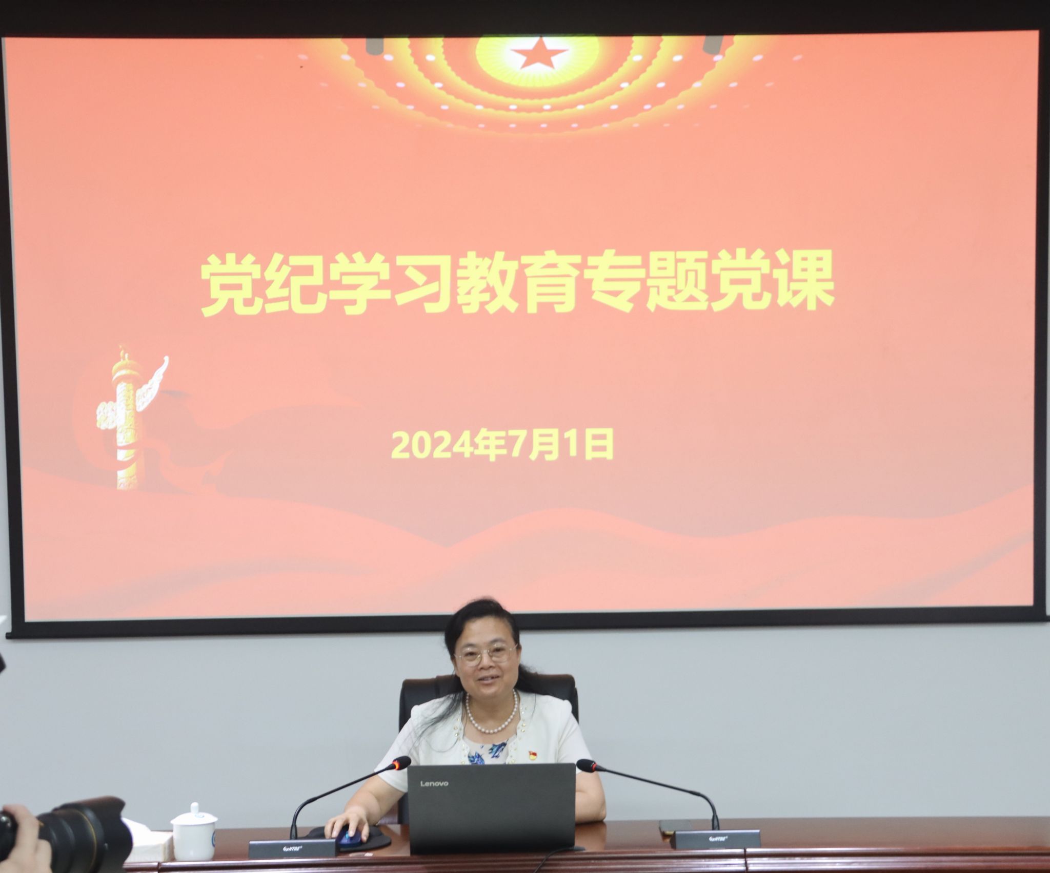 课上,韦仕珍从《中国共产党纪律处分条例》修订的历史沿革、新修订《中国共产党纪律处分条例》的主要内容和重要意义、贯彻《中国共产党纪律处分条例》的基本要求三个方面展开。韦仕珍表示,要坚定维护党中央权威和集中统一领导,要弘扬伟大的建党精神,坚持自我革命,贯彻全面从严治党的方针,落实新时代建党要求,始终坚持道路自信、理论自信、制度自信、文化自信,切实践行正确的权力与政绩,把严的基调、严的措施、严的氛围坚持下去。