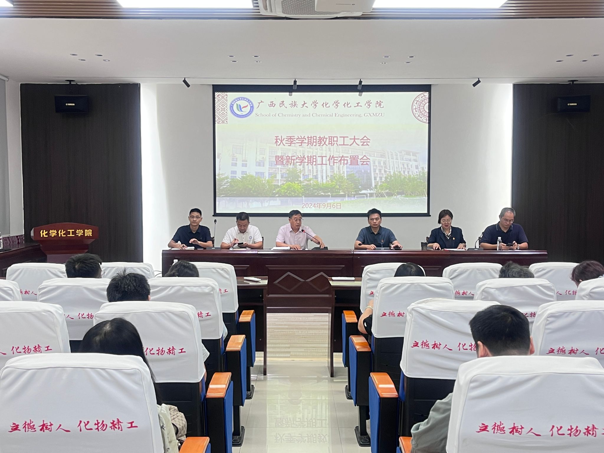 会上,谭学才首先介绍并欢迎新入职的10位教职工。接着,刘宝、韩要从、周丽曼、关一富、蓝丽红分别就教学、科研、学生工作等方面进行经验分享。随后,各分管领导总结上学期主要工作成绩,并部署本学期工作。最后,全体教职工共同学习党的二十届三中全会精神。