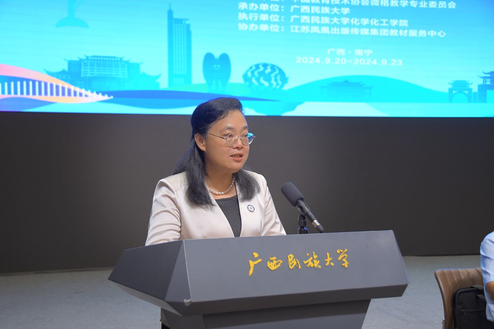 9月20—23日,2024年微格教学论坛暨第十三届高校化学教育师范生教学技能测试与交流展示活动在广西民族大学举行,本次比赛由广西民族大学必威西汉姆联承办。广西民族大学校长韦仕珍参加开幕式并致欢迎辞。中国教育技术协会微格教学专业委员会理事长孟宪凯,副理事长兼秘书长杨华、重庆师范大学化学学院院长王燚、南昌师范学院化学与食品科学学院院长罗明洪、广西民族大学必威西汉姆联党委书记黄钦出席活动。广西民族大学必威西汉姆联院长谭学才主持开幕式。