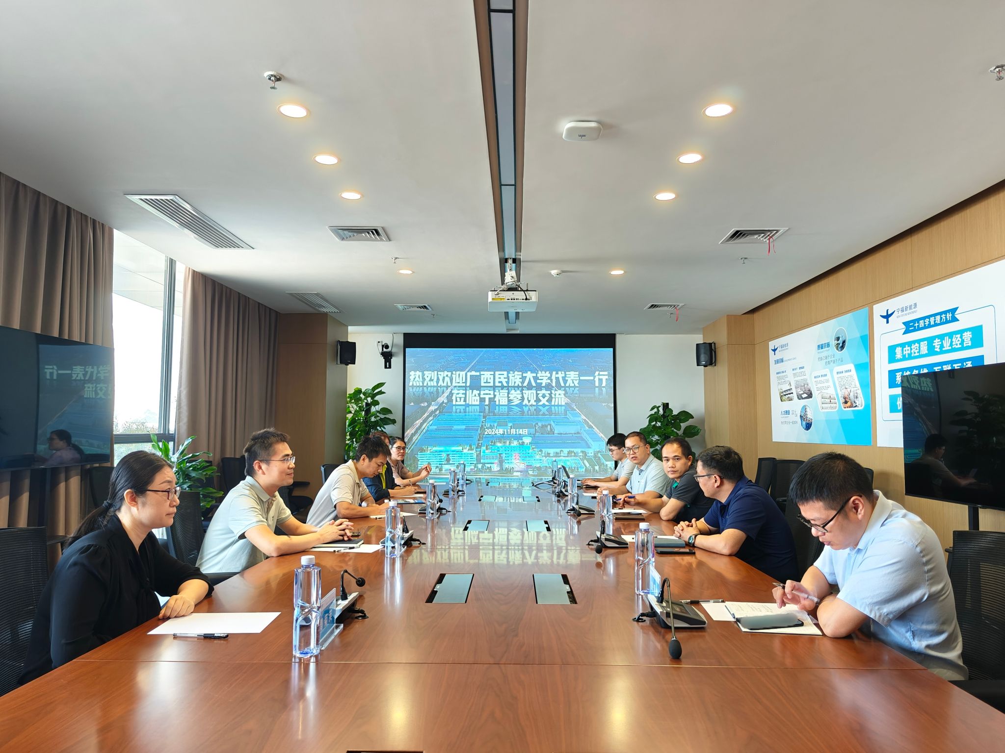 11月14日上午,学院党委书记黄钦、副书记吴晟志、专任教师周菊英、韩要丛、卢建芳以及辅导员李申桢一行六人,赴广西宁福新能源科技有限公司进行访企拓岗交流。广西宁福新能源科技有限公司品质部部长刘渭林、人事科科长黄宝弘、宁福工会副主席陈雷雷、规划科经理姚炳、人事科招聘主管郑高磊等人接待并与我院一行展开交流。