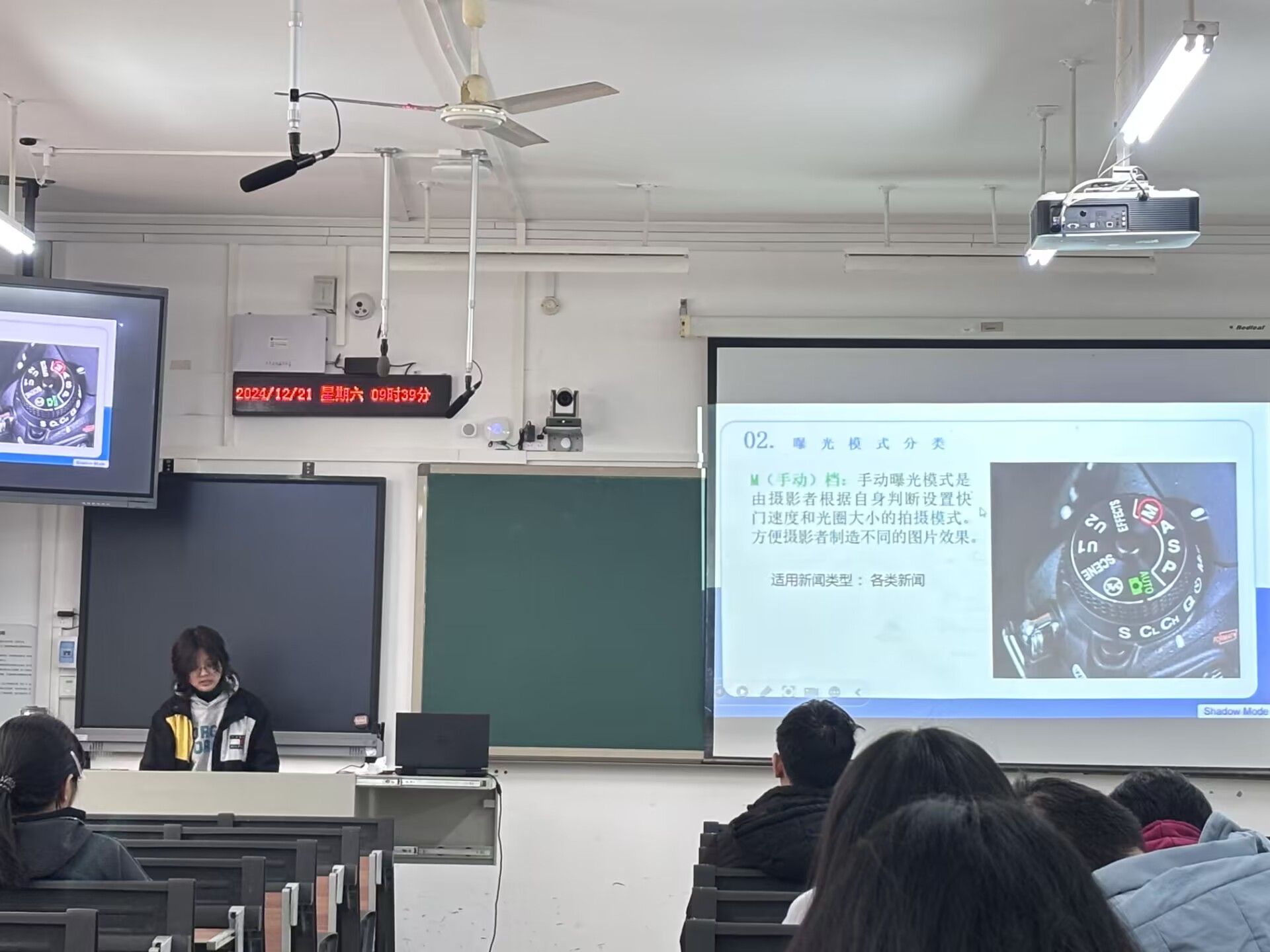 12月20日至21日,为有效提升学院学生的新闻撰写和摄影能力,我院邀请大学生通讯社副社长申羽同学为我院学生开展新闻稿撰写与摄影培训,活动分别于明德楼207、209教室开展。