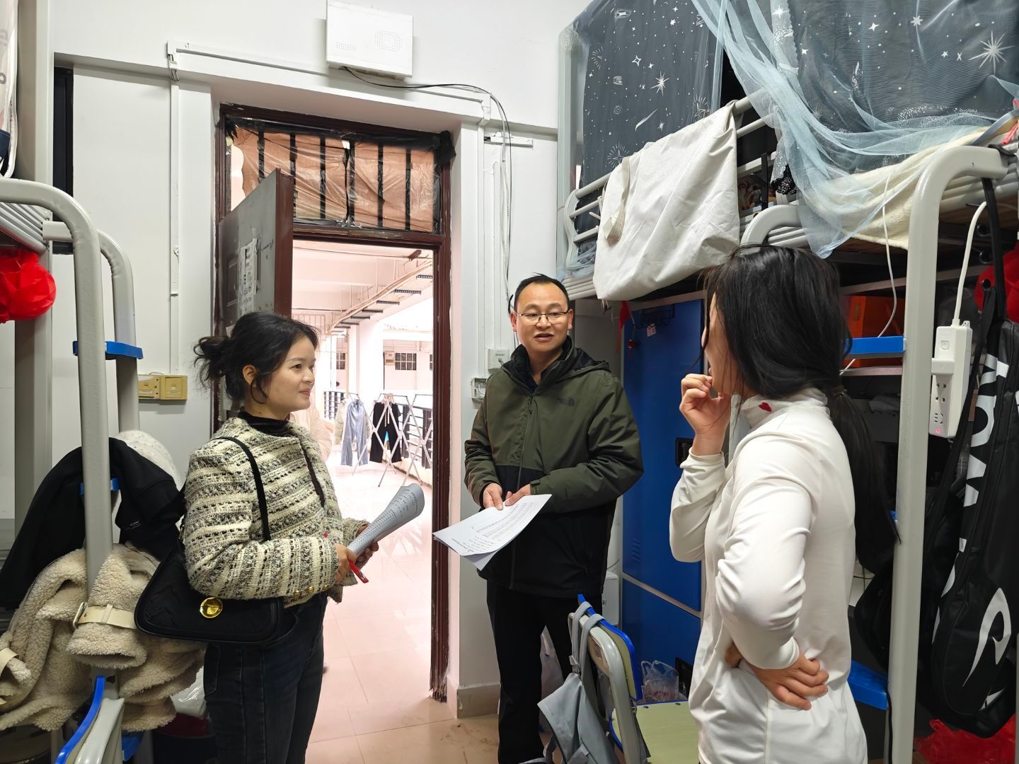 走访过程中,黄钦一行重点对学生宿舍用水用电、卫生环境等方面进行细致检查,同时与同学们亲切交流寒假生活及新学期规划,了解毕业生毕业论文和实习就业进展,听取学生们的意见和建议。
