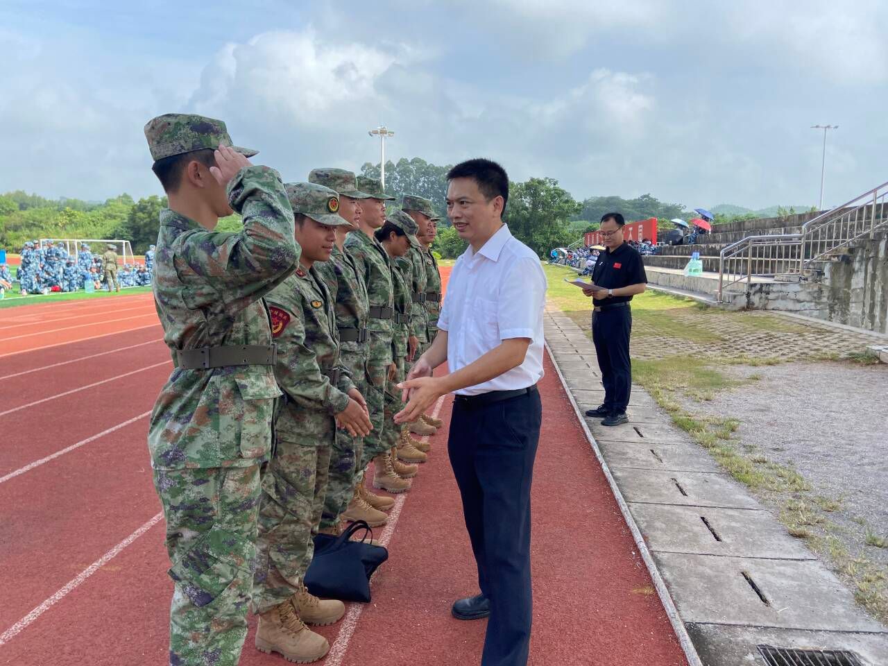 黄钦与承担此次军训任务的教官们交流,并向教官们表示感谢,对同学们在军训中展现出的坚韧不拔和积极向上的精神给予高度评价。黄钦表示,同学们要注意身体,合理安排训练与休息,确保以最佳状态完成军训任务。
