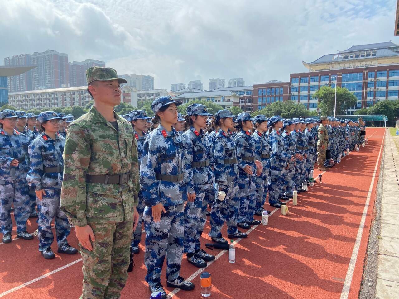 训练场上口号嘹亮、军姿挺拔,新生们展现出昂扬向上的精神风貌。