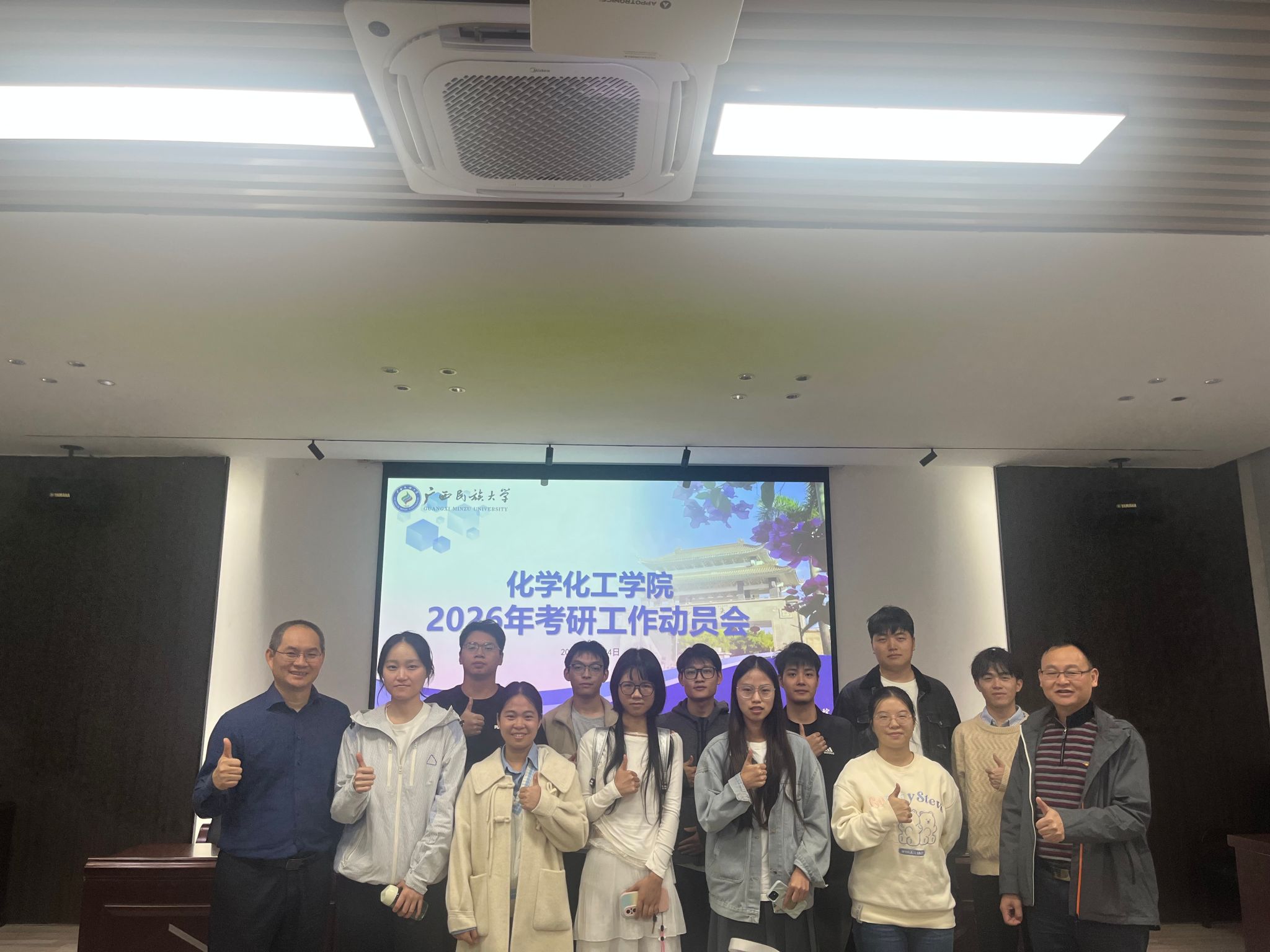 刘绍刚立足学院学科根基展开动员,重点介绍学科专业建设成果,强调学院分别于1977年、2007年、2019年招收本科生、硕士研究生和博士研究生,依托化学工程与技术一级学科博士学位授权点,拥有林产化学与工程国家民委重点实验室、广西林产化学与工程重点实验室等10余个科研平台,实现了从学士、硕士到博士完整的人才培养体系。随后,刘绍刚结合近年考研形势和数据,分享择校策略与备考规划,指出本院2025届硕士研究生就业率达89.13%,且18人考取名校博士,鼓励学子继续扎根本校深造。