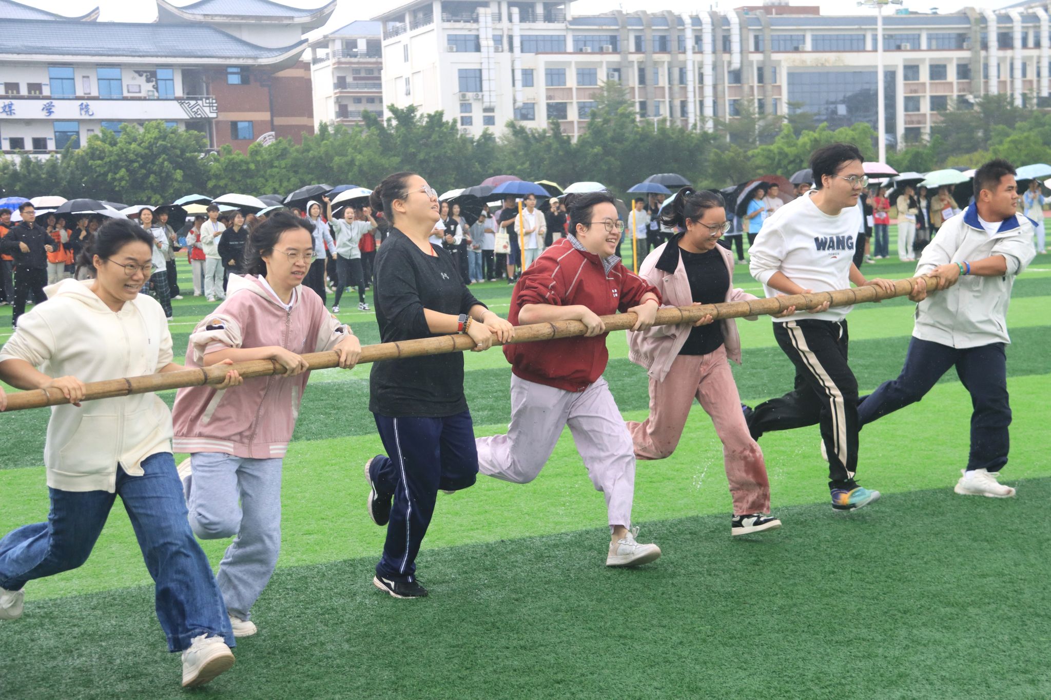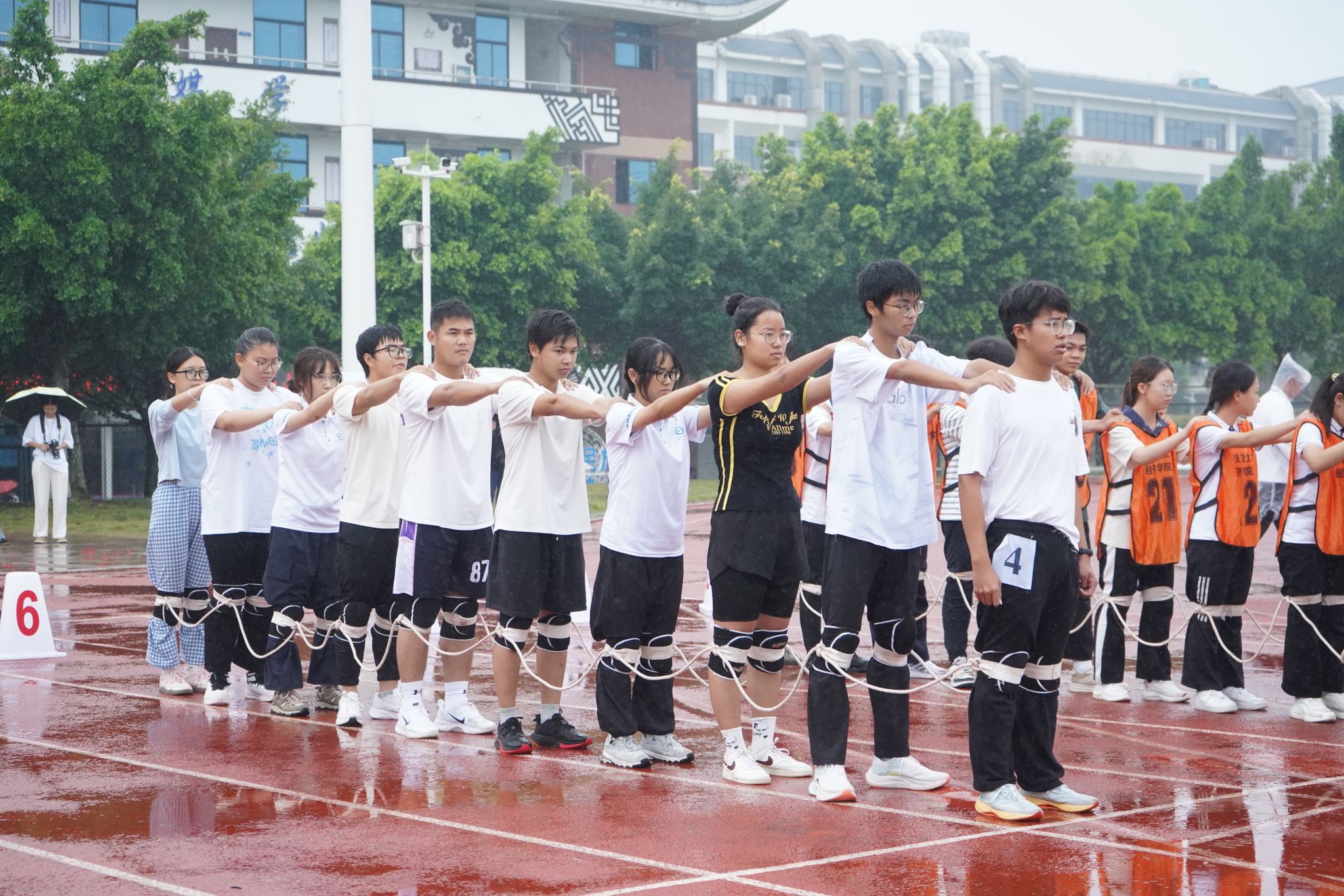 前期比赛阶段,我院学子迅速进入状态,在集体项目与个人项目中双线发力。三人板鞋竞赛、速度跳绳等项目里,队员们默契配合、步伐铿锵,用同步的节奏诠释团队力量;男子甲组5000米、1500米赛道上,选手们顶住体力考验,咬牙冲刺,用坚持展现不服输的韧劲;背篓投绣球、环校跑等特色项目中,健儿们兼顾技巧与速度,将活力与热情洒满赛场,多项赛事名列前茅。
