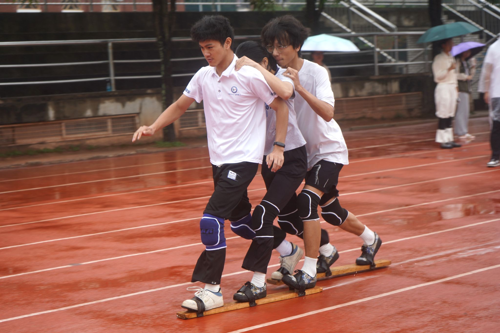 11月1日相思湖校区总决赛现场,竞争更趋激烈。男子甲组跳高赛场上,我院选手助跑、起跳、过杆一气呵成,以出色发挥斩获冠军;协同转盘、男子三足接力等项目中,队员们顶住压力、稳扎稳打,再度拿下季军荣誉,为学院争光。